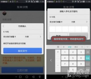 最后,小編也試了試用其它手指支付,由于沒(méi)有通過(guò)驗(yàn)證,應(yīng)用將自動(dòng)改為輸入密碼的方式,就算其他人撿到了這部手機(jī)也完全無(wú)法操作,賬戶中的資金只要一根手指就能輕松管理,是不是感覺(jué)自己威力無(wú)邊呢?